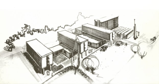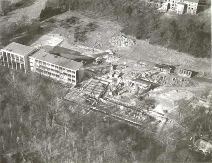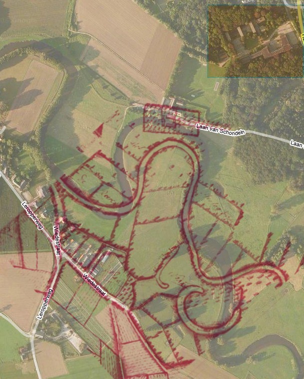 Hieronder zie je linksboven de school met het internaat, de boerderij aan het einde van de laan van Schondeln.