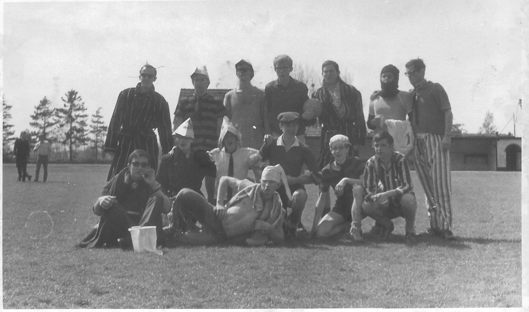 Een voetbalteam van 40 jaar geleden. Spelers en verzorgers uit de eerste groep die Flat C bevolkte op het nieuwe internaat in Schöndeln. Hemelvaartsdag 1967, 4 mei. Tegen wie we speelden weet ik niet meer. In ieder geval traden we aan in feesttenue!Staand v.l.n.r. Ed Drenth (5), Noud Jehoel (5), Theo Adams (VI), Paul Le Blanc (VI), Bert Verzantvoort (4), Henri Huibers (5), Pieter Hurkens(5).